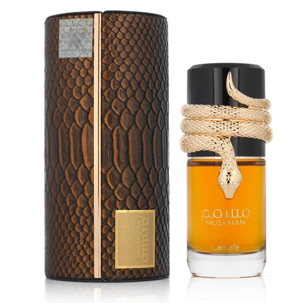 Musamam Lattafa es un perfume donde predomina la madera, el incienso y el oud. Es perfume unisex diseñada para quellos que quieran lucir sofidticados y elegantes. Se recomienda utilizar en clima frío y en ocasiones formales.